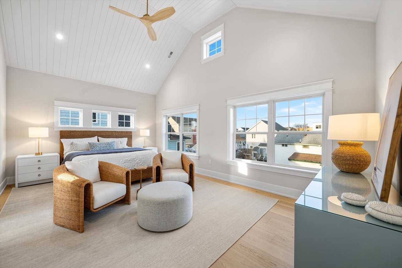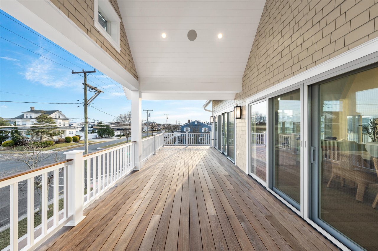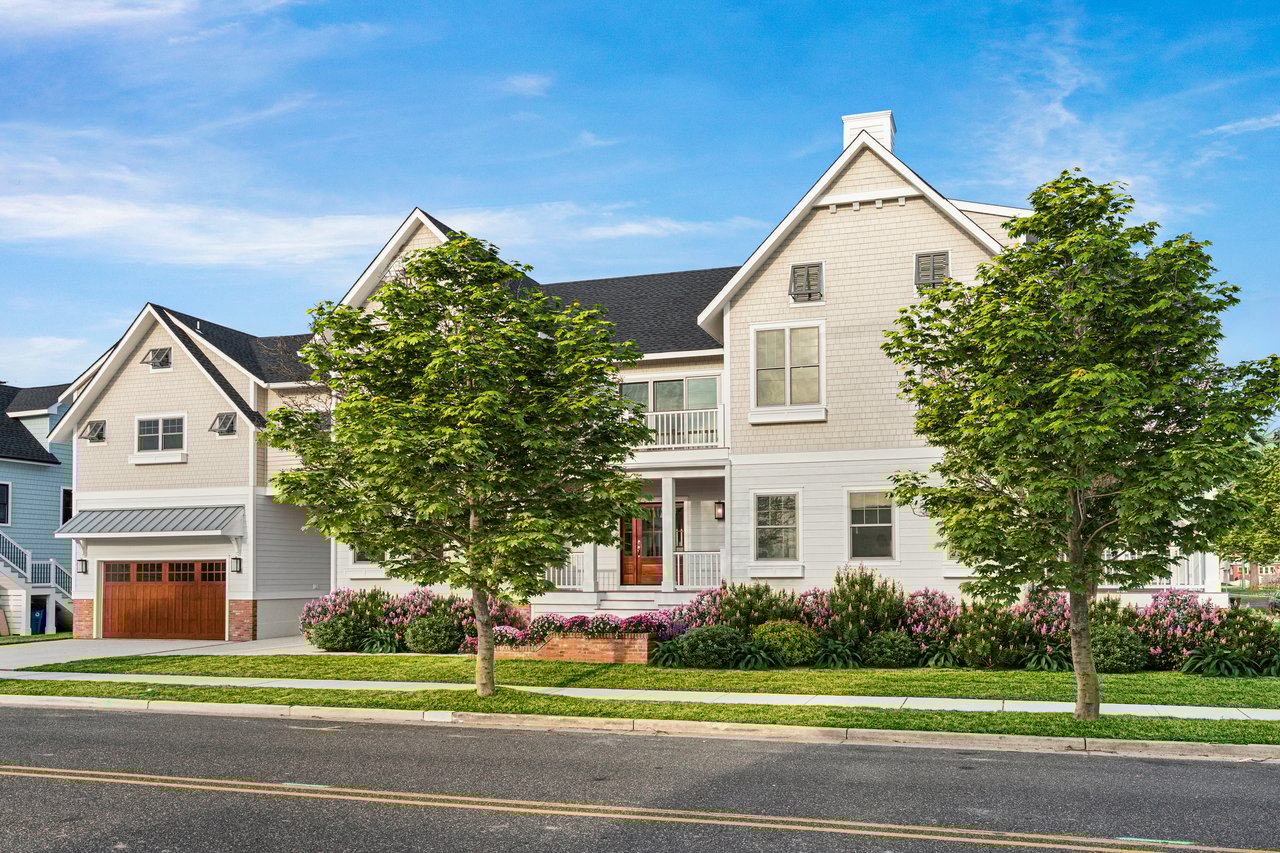 Classic in style yet modern in function, the home features 7 spacious bedrooms, 5 full bathrooms, 2 powder rooms, and 4 expansive decks totaling over 1,000 square feet. Situated on an oversized, 8,000Sqft "L-shaped" lot this one-of-a-kind property mimics two combined lots. Premium exterior finishes include Hardie® shingle and plank siding, Pella Impervia Morning Sky Gray windows, striking metal roof accents, brick veneer, and rich mahogany decking, delivering durability with timeless coastal appeal.