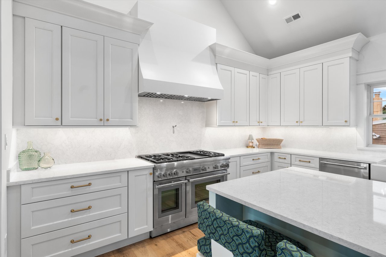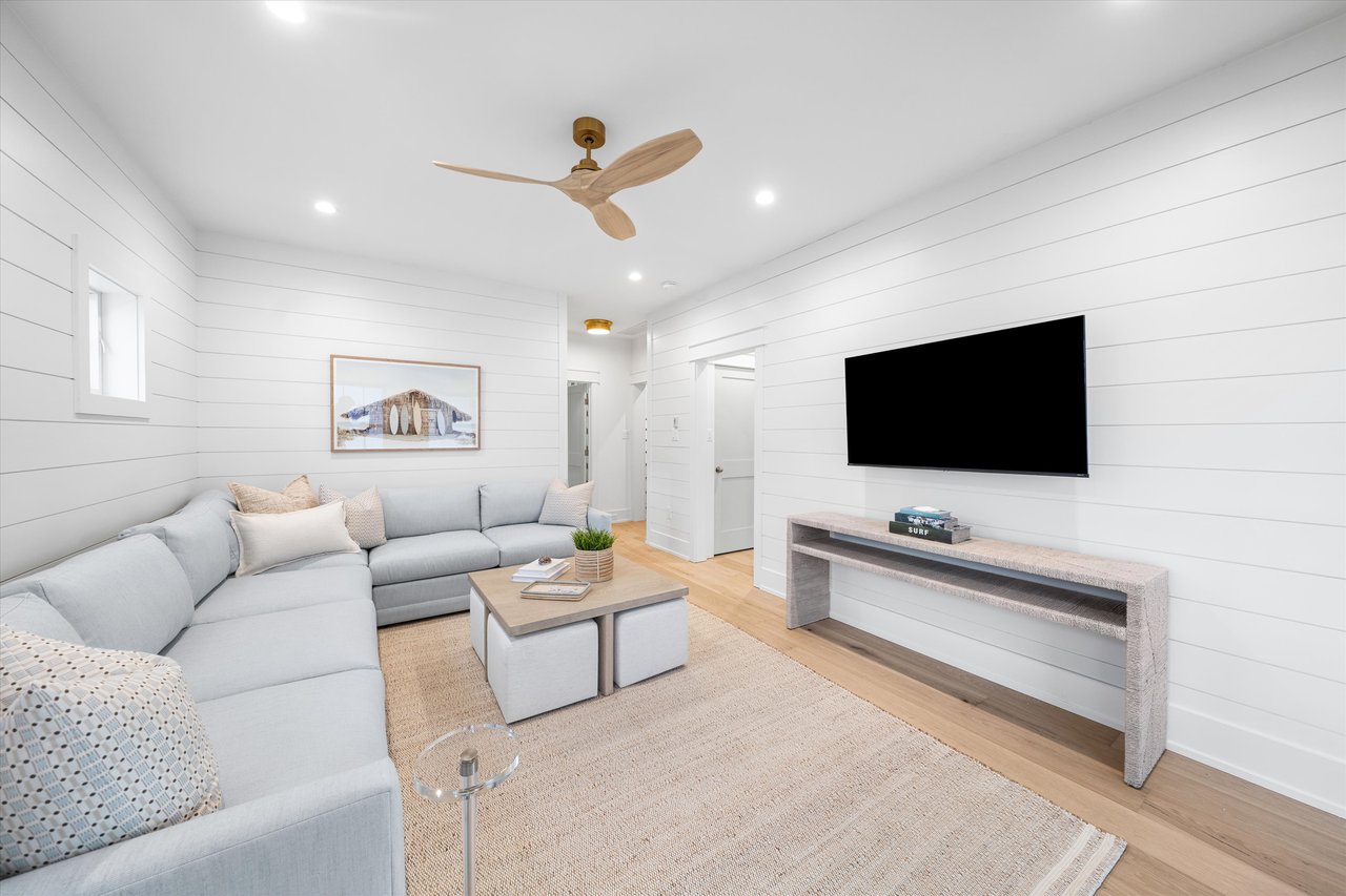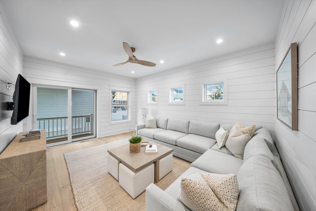 Classic in style yet modern in function, the home features 7 spacious bedrooms, 5 full bathrooms, 2 powder rooms, and 4 expansive decks totaling over 1,000 square feet. Situated on an oversized, 8,000Sqft "L-shaped" lot this one-of-a-kind property mimics two combined lots. Premium exterior finishes include Hardie® shingle and plank siding, Pella Impervia Morning Sky Gray windows, striking metal roof accents, brick veneer, and rich mahogany decking, delivering durability with timeless coastal appeal.