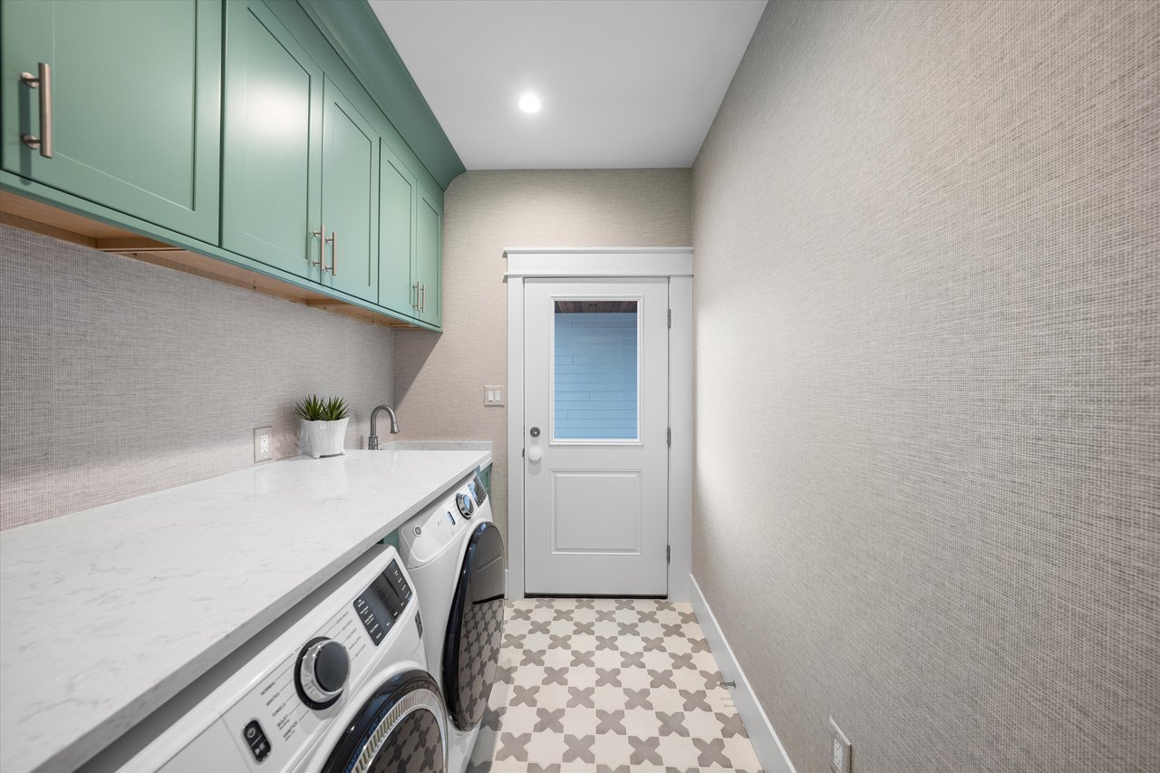 The first level is ideal for family or guest accommodations, offering four generously sized bedrooms, three full bathrooms, a welcoming family room just steps from the pool, a walk-in laundry/mudroom with direct driveway access, and a convenient powder room.