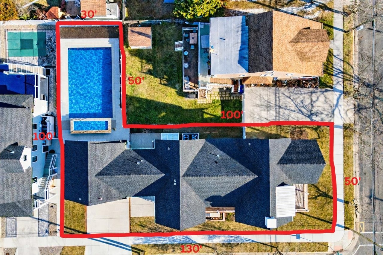 The crown jewel of the property is its expansive, resort-style backyard, situated on the 30' x 100' “L” section of the lot. This outdoor oasis features a 15' x 30' gunite pool with a sun shelf and spillover spa, generous lounge areas, and a custom wet bar with under-counter refrigeration and a 75inch TV protected by an automatic roll down shutter. All surrounded by beautiful pavers and lush landscaping that will enhance the privacy as it matures.