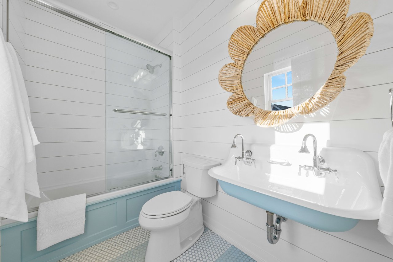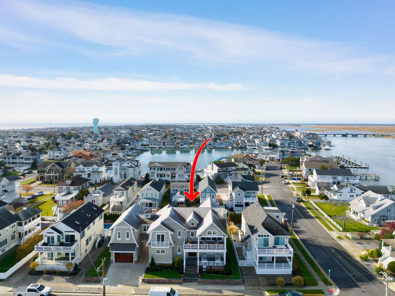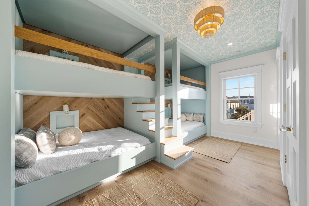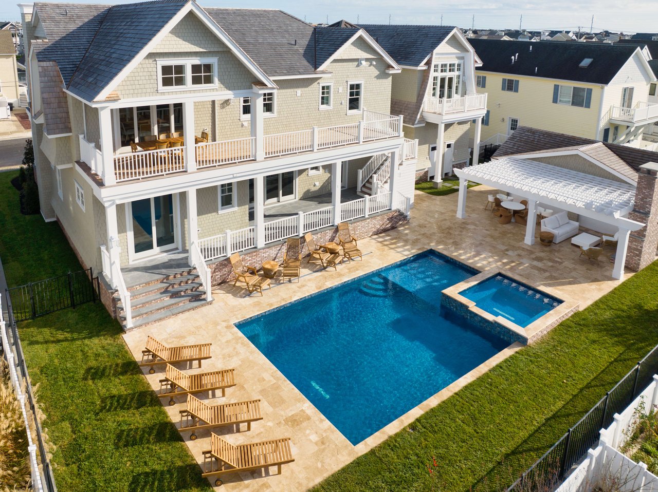 Impressively imagined and conceived for entertaining, this admirable estate is ready to host family, friends, and large gatherings like no other property on the island. Refined and classic, this gorgeous home will offer over 5,000 sq. ft of living space, 8 bedrooms, 8 full baths, 2 powder rooms, 5 porches, 1.5 car garage plus a 900+/- sq ft pool house. Thoughtfully designed by Architect Blaine Steinman and masterfully constructed by Vallese Builders, this home is divided into separate living spaces that multiple generations can enjoy while still offering an open concept design. Entering through the covered porch you are greeted with a 200-bottle wine cellar exquisitely built-in under the staircase, as you continue forward you will enter the cozy family room that leads to the rear covered porch. There are 5 ensuite bedrooms on the first floor with one offering custom built-in bunks. A powder room that can be accessed from the deck and an expansive laundry room round out this level. Ready for everyday living, the second level leads to an open concept kitchen, dining, and living area with dramatic vaulted ceilings. The kitchen consists of custom cabinetry and an oversized island with seating for six and top of the line appliances for the home chef, as well as a full walk-in pantry. Just off of the kitchen is a dining area for ten and an additional dining space overlooking the pool on the rear porch. The living space features a gas fireplace and wet bar as it leads out to the covered front porch offering incredible bay and sunset views to the west. There are two additional ensuite bedrooms, one of which is another custom bunk room. Lastly you have the master suite that has its own entire wing on the east side of the home. A pocket door opens leading into a bright and airy home office. As you continue into the master you will be blown away by its size and soaring vaulted ceilings. There is a his and hers walk-in closet as well as a spacious master bath that offers his and her vanities, a soaking tub and stunning tiled walk in-shower. The highlight of the home is without a doubt the resort like entertaining space that fills the backyard of this incredible 105'x110' lot. There is a pool house like no other that has ever been seen on 7 Mile Island. The pool house consists of an outdoor kitchen, bar, dining area and lounge area in front of a stunning fireplace. Steps away is the large, heated swimming pool with a spillover spa. There is ample space for lounge chairs as well as a beautifully landscaped side yard. This is a true entertainer's paradise. The home is located on a beautiful street just steps away from the Stone Harbor Yacht Club and a short stroll to downtown shopping and dining. If you are looking for a legacy estate to house multiple generations this is a must-see property. The home will be professionally and tastefully furnished by BluFish Interiors and the estimated completion is November 2023.